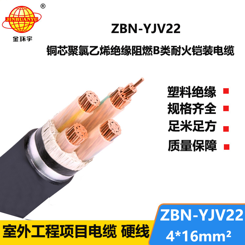 金环宇电线电缆 阻燃耐火电力电缆ZBN-YJV22-4X16平方 铠装低压电缆
