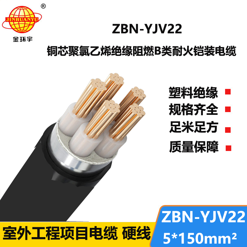 金环宇电线电缆 耐火铠装电缆ZBN-YJV22-5X150平方 b类阻燃电缆